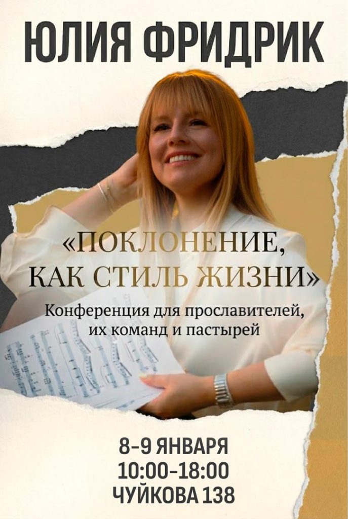 Юлия Фридрик, мама 4х детей, жена, оперная певица. Ведет служение прославление 20 лет, автор христианских песен, вокальный педагог, музыкант. Основатель школы для прославителей, автор проекта «пой Библию».